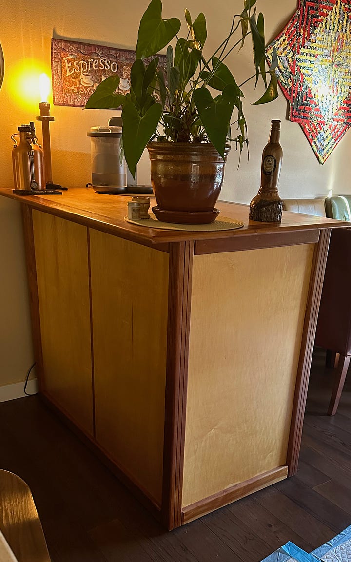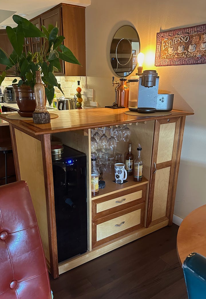 I don’t remember when or how woodworking first got into my psyche. Although I built some simple things as a kid I was more interested in chemistry and electronics. I suppose some of that was because of spending time in my dad’s tool filled workshop in our basement. However, when my brother and I did spent any time down there it was to help organize the workshop (like sorting nails and screws) as well as to fool around with some interesting things left behind by the former owner who was a dentist - like a jar of mercury. The only major tool my dad had was a Shopsmith that had been left behind by that previous owner. If you don’t know what that is - it is a five-in-one power tool: table saw, drill press, horizontal borer, lathe and disc sander. Who knows how old it was. It came with the house when my parents moved in in the late 1950’s. It still exists today although I have passed it on.