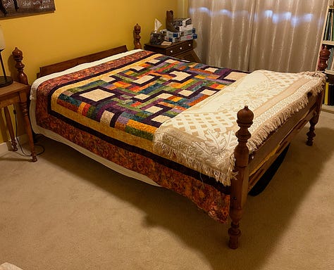 After purchasing a stack of maple boards, our first order of business was to build the headboard (by the way, I am having difficulty finding a picture of that bed. If I could show you a picture this would all make more sense). The headboard was to be a 7’ high bookcase. It was a beautiful piece of workmanship my dad and I - all screwed and glued - and all built with the Shopsmith, in a fairly small basement workshop.