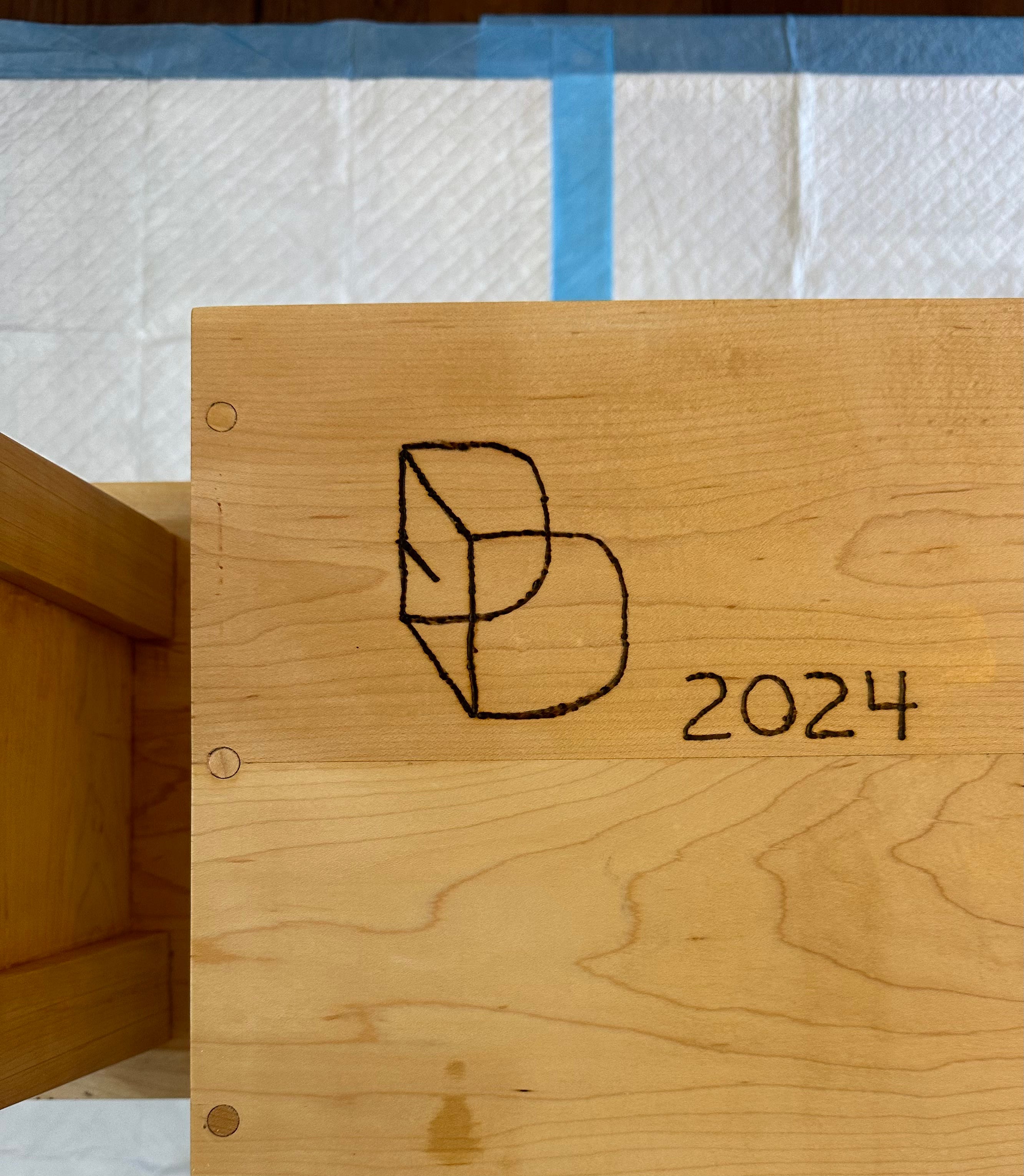 Again, although my dad didn’t do a lot of carpentry he had a foundational part to play in my woodworking. Above you see my brand that I woodburn into all of my projects. (I should have had a professional branding iron made because sometimes my woodburning is less than ideal, but it is what it is.) The D-D is most prominent - Doug Diehl - but you will also see on the left a small mark that produces an “E.” My dad’s name was and my middle name is Edwin. That little mark is very important as it honors my dad as well as it reminds me how he helped me get started through an initial project we had together.